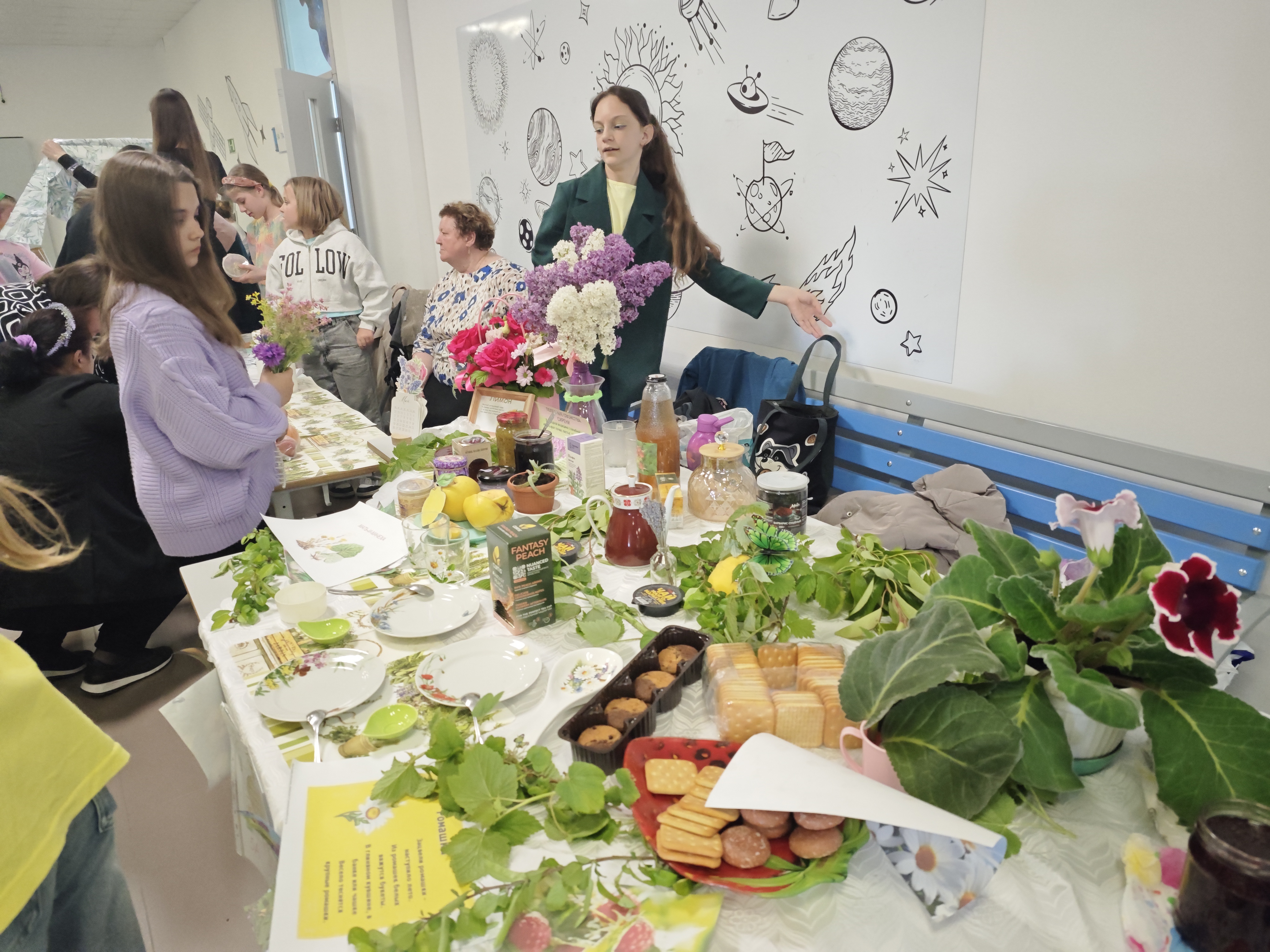 Каждая семья и класс представили свои уникальные рецепты приготовления чаев и блюд из лекарственных растений, а также полезных овощей и фруктов. Мы провели множество мастер-классов: участники учились изготовлению ароматных чаёв, лепке и даже сделали ароматические саше с лавандой и декоративные васильки. Также желающие смогли научиться сажать петунии.